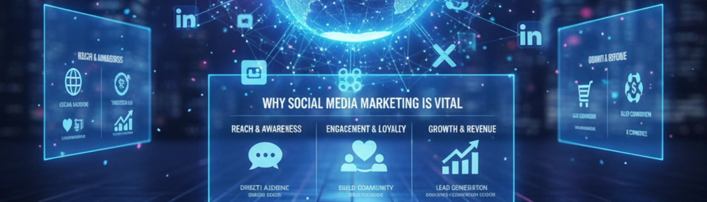 Social media marketing has become essential in today’s business world because it allows brands to connect directly with their audience, build trust, and showcase their products or services in real time. It helps businesses increase brand awareness, engage with potential customers, drive website traffic, and generate leads — all while providing valuable insights into customer behavior. In a competitive market, an effective social media strategy not only strengthens your brand presence but also gives your business a measurable advantage over competitors.